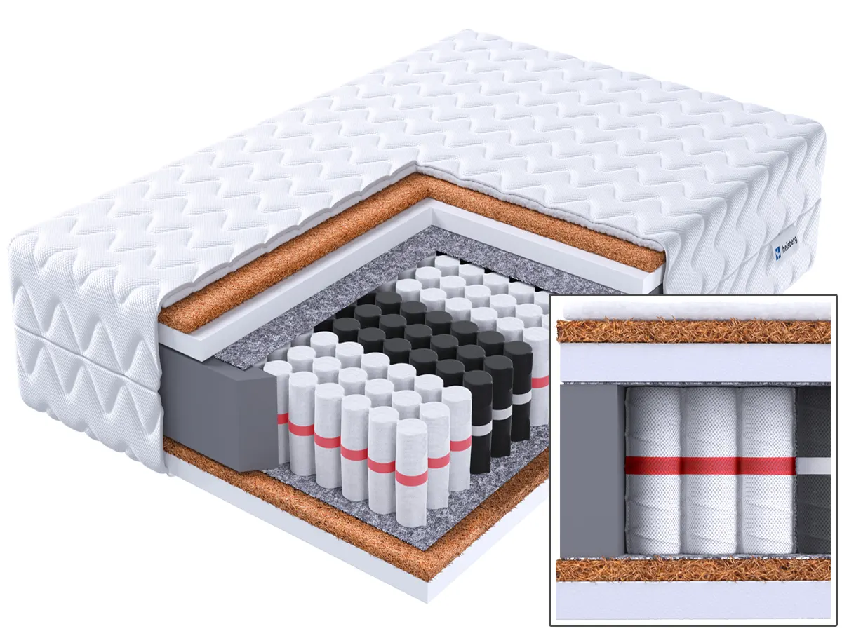 - Mata kokosowa: zwiększa sztywność i trwałość materaca, poprawiając jego wentylację.